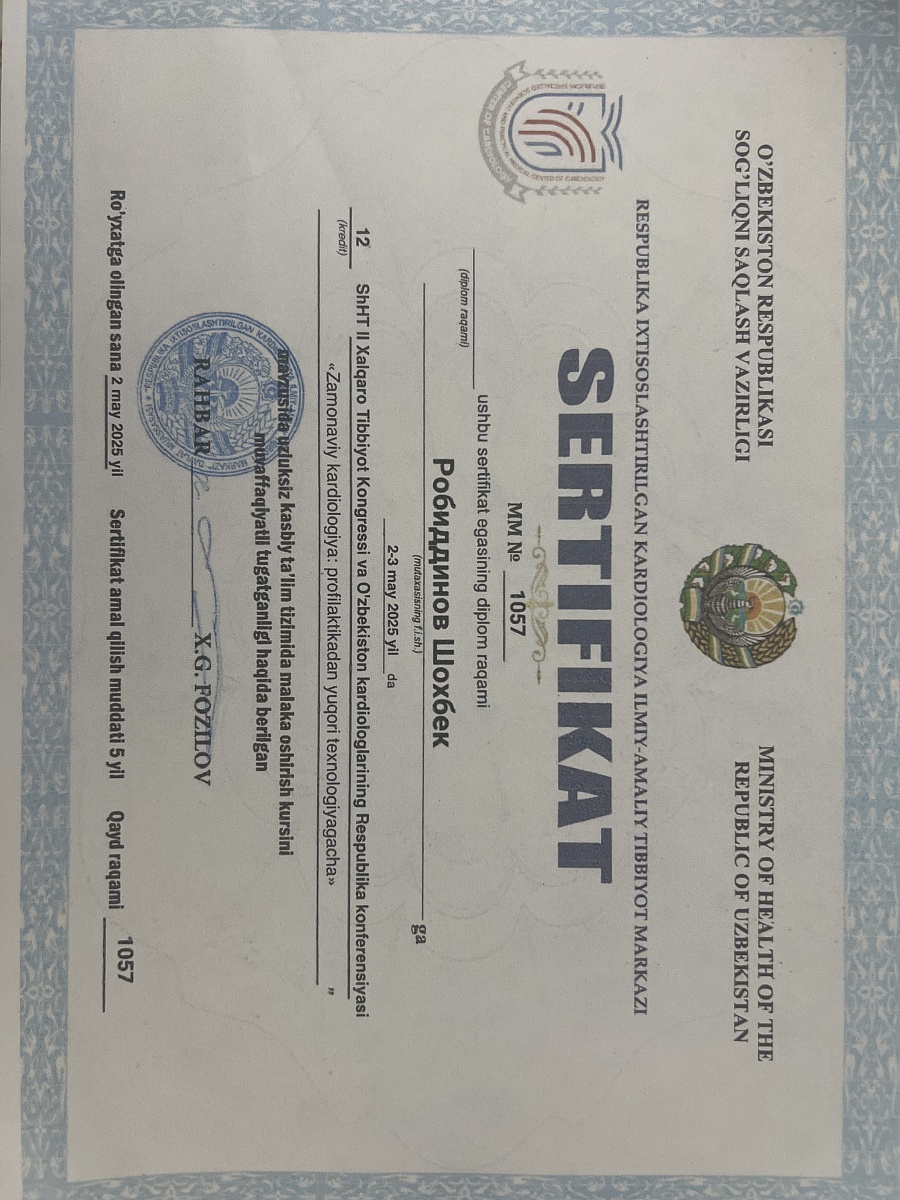 | 2018-2024 | Ойдин шифо Кардиолог |